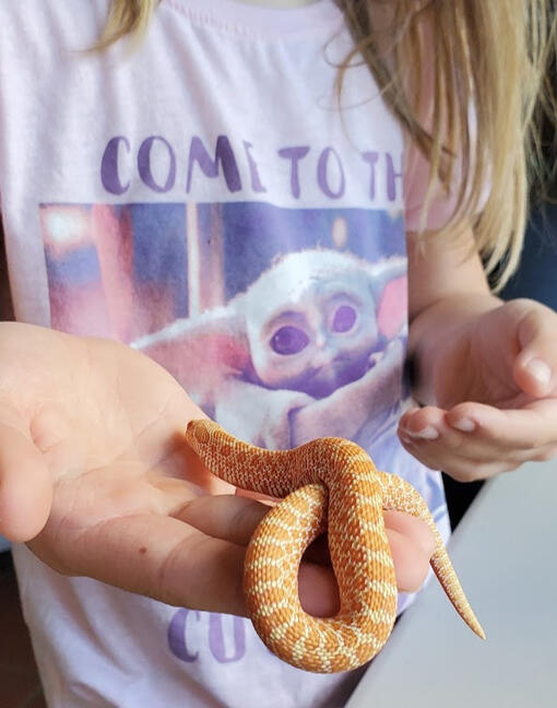 Hognose snakes tend to become calmer with regular gentle handling. We handle all of our reptiles regularly. Support their body fully and avoid grabbing their head. Be prepared for their dramatic defensive displays.
