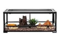 A front-opening glass or plastic terrarium at least 20 gallons for an adult. Larger is better.