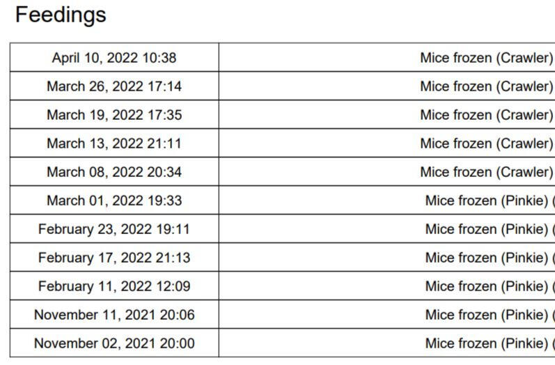 Prey size should be no wider than the snake's head at its widest point